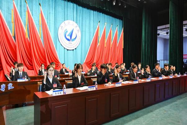 大会在激昂嘹亮的国歌声中拉开帷幕。郭新伟代表学校向大会的召开表示热烈祝贺,向出席大会的全体代表和全校青年学生致以亲切问候,并对上届学生会工作给予充分肯定,赞扬了广大青年学子昂扬向上、实干担当的青春风采。他要求,广大青年学生要坚定理想信念,在胸怀家国中锚定人生航向,努力成长为有理想、敢担当、能吃苦、肯奋斗的新时代青年;要锤炼过硬本领,在勤学善思中夯实成长根基,提升综合素质,为未来职业发展和人生成长打下坚实基础;要勇于创新创造,在敢闯敢试中争当时代先锋,把青春智慧转化为推动自身发展、学校建设和社会进步的实际成果;要涵养高尚品德,在修身践行中传递青春正能量,共同营造风清气正、和谐向上的校园氛围,在自立自强中书写精彩人生,为学校建设和民族复兴贡献力量。