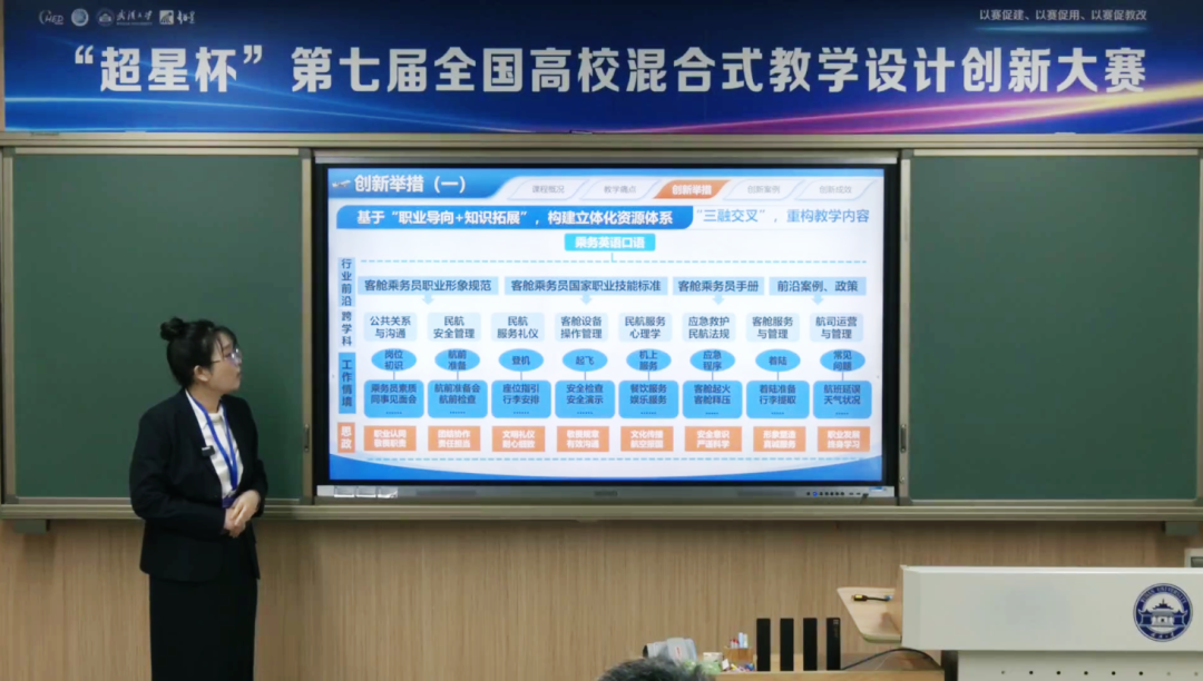 近日,由高校教学发展网络(CHED)、中国电子教育学会主办,武汉大学承办的第七届全国高校混合式教学设计创新大赛决赛在武汉大学举行。我校乘务学院教师臧凯旋主讲的《乘务英语口语 A》(团队成员:黄燕鹍、杨宁霞、刘钇彤)凭借精湛设计与现场展示,荣获一等奖及“数智教育”专项奖;生物与医药工程学院教师方菁菁主讲的《食品毒理学》(团队成员:吴涛、刘龙祥、王玉江、王彦美)荣获三等奖。